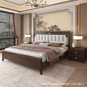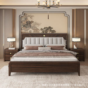 新中式乌金木实木床 家用主卧现代简约双人床1.8米燕尾隼储物婚床