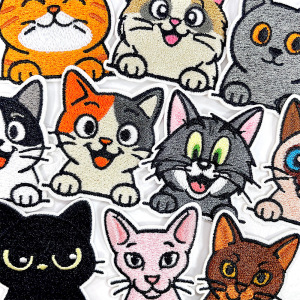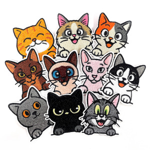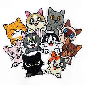 かわいい猫の刺繍布ステッカー、オレンジ猫、三色猫、黒猫など、かわいい表情の粘着アイロン接着パッチ