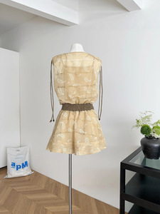 KUBERAS 原创小众短款V领抽绳腰封背心连衣裙短袖上衣半身裙套装