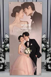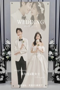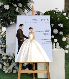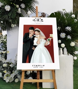 结婚婚礼迎宾牌海报结婚迎宾婚纱照订婚kt板订作展示架易拉宝设计