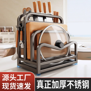 ステンレス鋼ナイフホルダー家庭用鍋蓋収納ラックまな板ラック厚みのあるステンレス鋼壁掛け一体型収納ラック