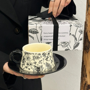繁花迷蝶咖啡杯碟套装原创设计感下午茶陶瓷杯高档伴手礼结婚礼物
