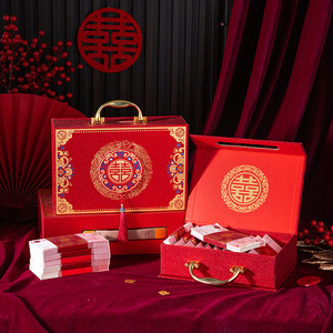 订婚礼金盒彩礼钱盒子提亲彩礼盒彩礼箱结婚布置装饰聘礼盒装现金