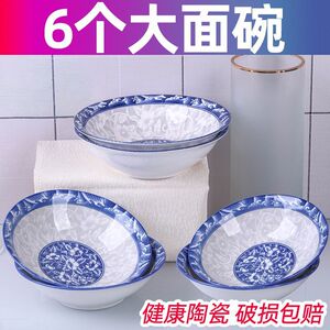 新款青花瓷面碗6英寸家用釉下彩汤碗耐高温陶瓷碗家用吃饭面碗