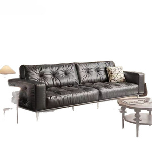モダンでシンプルなレザーアートソファ北欧イタリアのミニマリストリビングルーム小さなアパートハイエンドライト高級2人または3人掛けソファ