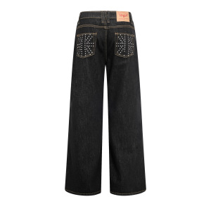 アメリカンクラシックハイストリートバックポケットビーズジーンズレトロオールマッチベーシックスリムクリーンフィットストレートパンツ