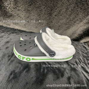 新款贝雅平底Cross洞洞鞋男女情侣休闲包头鞋加绒棉拖鞋可拆批发