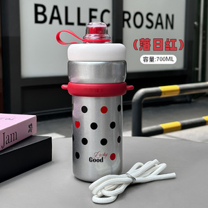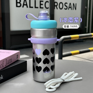 見栄えの良い女性の大容量魔法瓶カップ、ポータブル家庭用アイスカップ、茶水分離カップ、ストラップ付き直飲みカップ