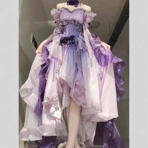 グラデーションパープルフロントショートバックロングウェディングドレスロリータドレスロリータヘビーテールふわふわプリンセスドレス女性用