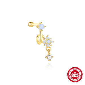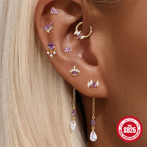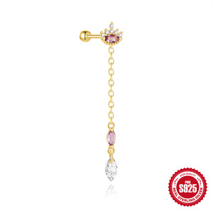 S925 スターリングシルバー天然石クリスタルハイエンドラウンドビーズスレッドピアスタッセル耳骨ネイルヨーロッパとアメリカの売れ筋パーソナライズされたイヤリング