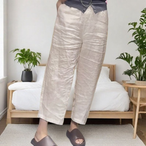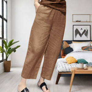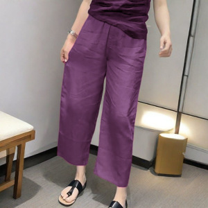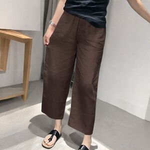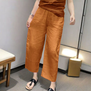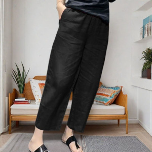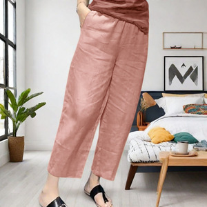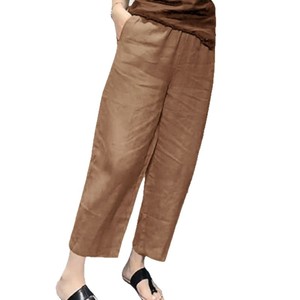 薄い綿とリネンの女性のパンツ弾性9点パンツ女性のパンツ夏の新しいルーズカジュアルハイウエストパンツワイドレッグパンツ