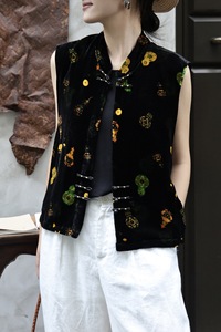 新中式香云纱拼接真丝丝绒宝葫芦马甲新款国风盘扣小众坎肩上衣01