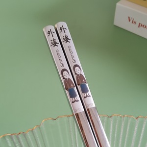 【お父さん+お母さん+小さな妖精+お箸】計4組~両面カラーレーザー彫刻