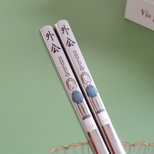 大きな文字の新しいスタイル [おじいちゃん、おばあちゃん、両親 + 小さな暖かい男の子と小さな妖精 + お箸] 合計 7 ペア ~ 両面カラー レーザー彫刻
