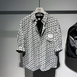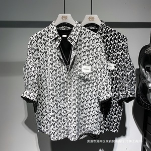 新しいファッションメンズストライププリント半袖ハンサムシャツ夏の五分袖パーソナライズされたストリートトレンドシャツ