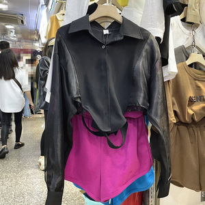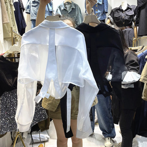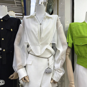 女性用夏デザインの半透明日焼け止めシャツ、ウエスト露出不規則テンセルシャツ、ショートヨーロピアンシャツ