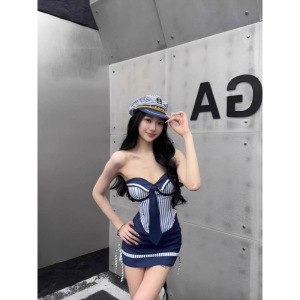 纯欲风辣妹套装女2025夏季修身无袖领带吊带上衣高腰半身裙两件套