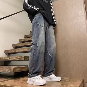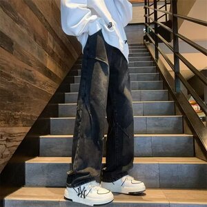 ソースメーカー ジーンズ メンズ 春夏 アメリカン ストレート メンズ パンツ トレンド バイブパンツ 大きいサイズ ゆったり ワイドレッグ