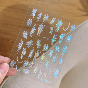 雪草の葉ネイルステッカー3D粘着付きステッカー手描き白花ネイルステッカー装飾品卸売ins風