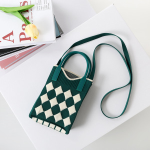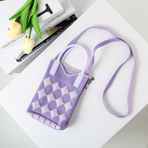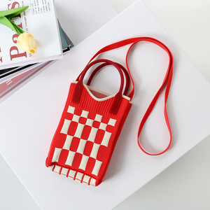 2025 春フライ織バッグトートバッグガールラブ携帯電話バッグウールニット小さな正方形バッグクロスボディバッグテクスチャバッグ