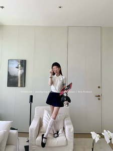 COOLLINE Lin Zixi 酸素系女子高生ガール系ミュウ系ポロセータースーツネイビーブループリーツスカート
