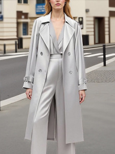 背の高い人向けのエクストラロング丈のトレンチコート、膝丈を超える超ロングコート、欧米風クロスボーダーのエレガントな通勤スタイルの新作