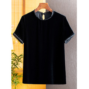 005 高级感真丝丝绒短袖上衣女,S M L XL XXL,不退不换!!