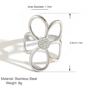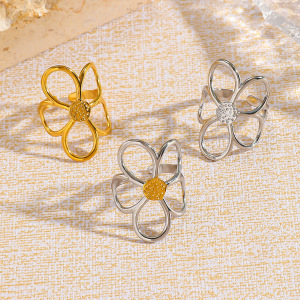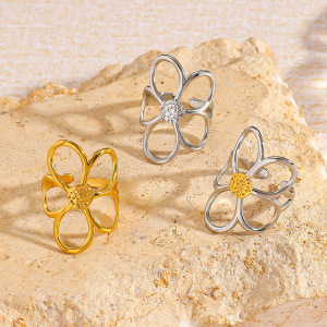 ヨーロッパとアメリカのファッションステンレス鋼リング中空花個性誇張インチチタン鋼ゴールド鋼色コントラストオープンリング