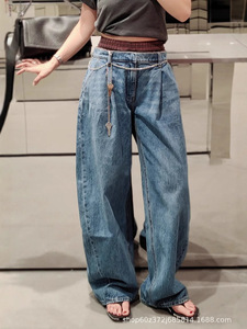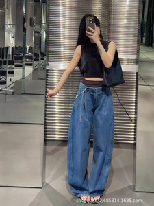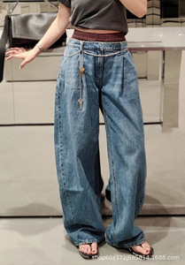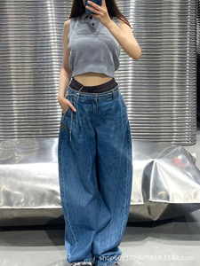 2025年初秋の新作ニッチデザインフェイクツーピースダブルパンツウエストレイヤードルーズハイウエストワイドレッグシミタージーンズ