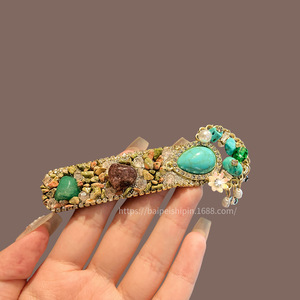 新しい中国風のストーンクリスタルフラッシュダイヤモンドタッセル額ヘアピンファッショナブルなサイドヘアピンパーソナライズされた気質ヘアピンレトロ
