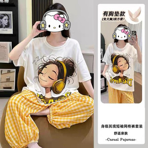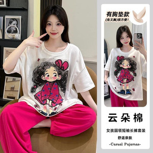 女性のための胸パッド付き人気パジャマ 2025 半袖ズボン夏のホーム服かわいいスタイル快適なカジュアルスーツアウターウェア