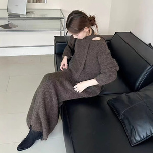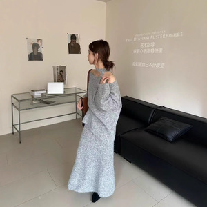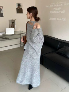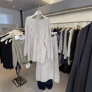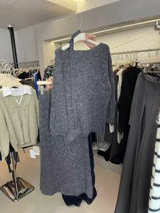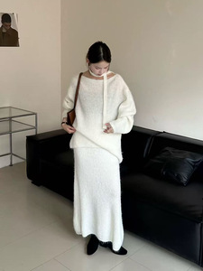 韓国ニットセータースカートスーツ女性用2025秋冬レイジースタイル無料スカーフ工場直販セットから