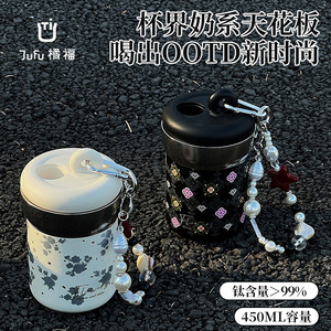 Jufu ライト高級純チタンコーヒーサーモスカップ 2025 新しい女の子の高価値ウォーターカップ茶漏れギフトボックス付きコールド