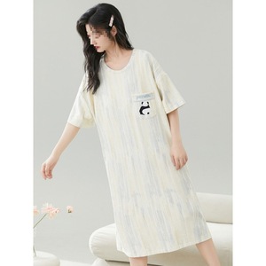 女性用ナイトガウン、夏用薄手半袖、膨らみ防止、オールインワン、大きいサイズ、胸パッド付き、屋外で着用可能、ホームウェア、コットン漫画