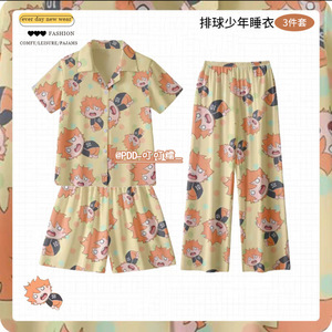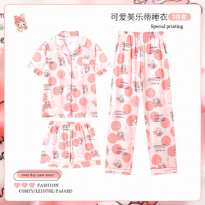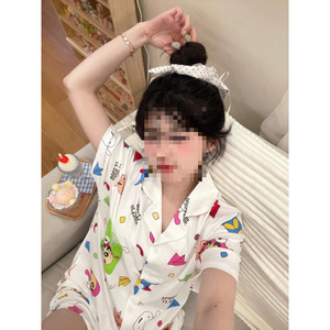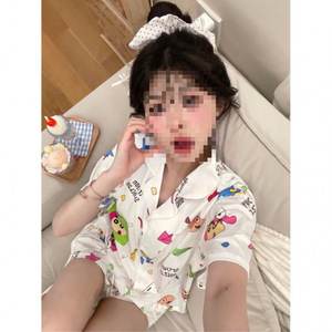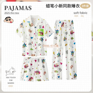 日本のスリーピースクレヨンしんちゃんパジャマ女性のための夏薄い半袖ズボンかわいい漫画学生ホーム服