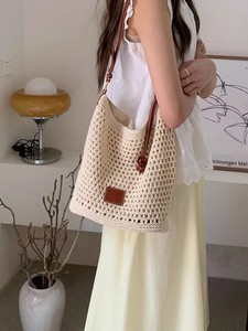夏中空織バッグ 2025 新しい怠惰なスタイルリラックスショルダーバッグ休暇旅行トートバッグビーチバッグ