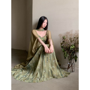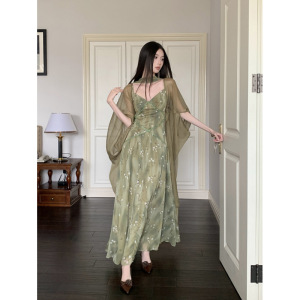 ストリーマーカーディガンジャケット付きのリアルショット既製シフォンサスペンダードレス