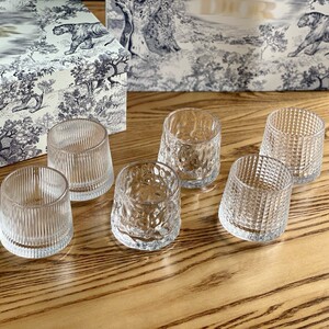 D's 新しいスタイルのラフィアパターンウォーターリップル透明クリスタルカップ 6 パックギフトボックスウイスキーカップセット回転
