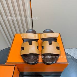 2025 春夏新作無垢材底本革おじさんスリッパ女性のアウターウェアビーチ厚底サンダル靴