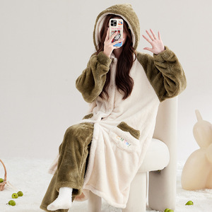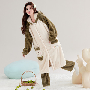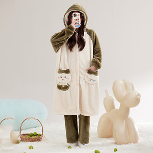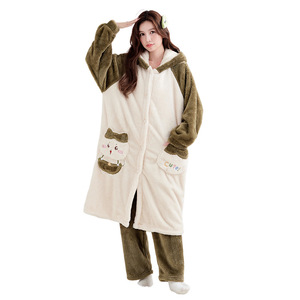 甘くてかわいい猫のパジャマ女性の秋と冬のロング厚く暖かいコーラルベルベットパジャマフランネルホーム服