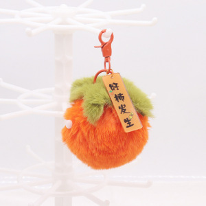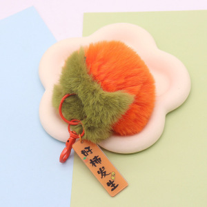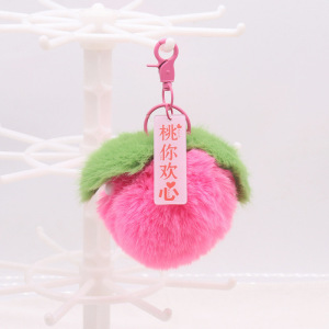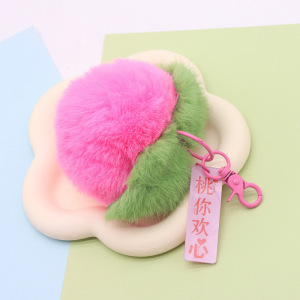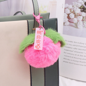 大きな模造レッキスウサギの毛皮、柿、桃、フルーツカーバックルペンダント、超かわいいぬいぐるみボールスクールバッグペンダント