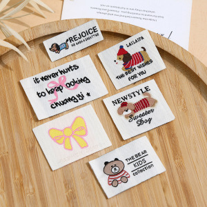 漫画の文字、動物の布ラベル、ニッチデザイン、織りラベル、布ラベル、コート、バッグ、衣類アクセサリー、ウォッシュラベル、メインライス
