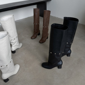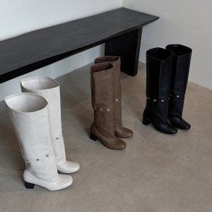 牛皮两穿高筒长靴女骑士靴秋冬新款真皮圆头粗高跟套筒长筒堆堆靴