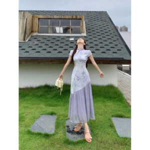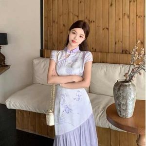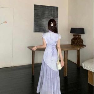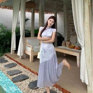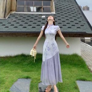 プラスサイズの新しい中国風チャイナドレス、女性用の高級ドレープドレス、夏の太ったMMのお腹をカバーしてスリムに見えるスカート