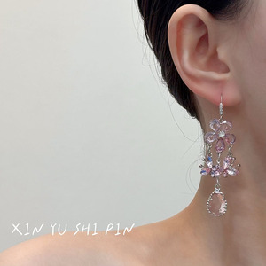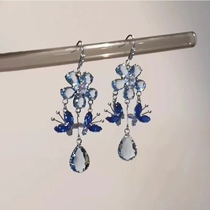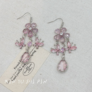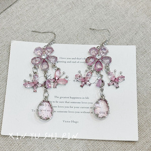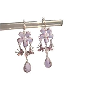 スーパーフェアリーパープルフラワーバタフライタッセルイヤリング、フォレストスタイルの小さな新鮮なイヤリング、夏の美しい高価値イヤリング