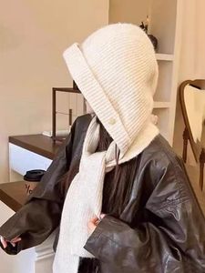 新しい目出し帽冬防風スカーフウール帽子女性の暖かい大きな頭囲顔小さな耳保護帽子