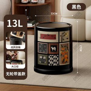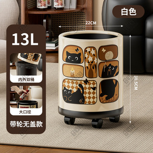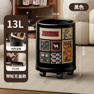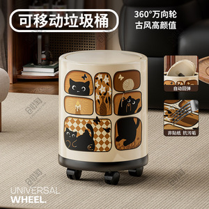 レトロなスタイルのゴミ箱、家庭用高価値車輪付きゴミ箱、リビングルームと寝室、ライト高級ハイエンド大型サイズ2025新しいスタイル