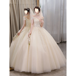 メインウェディングドレス 2025 新しい花嫁気質ワンショルダーシャンパンカラー豪華な宮殿スタイルフレンチプリンセス秋と冬のライトガーゼ
