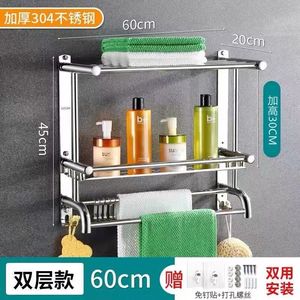 極厚 304 ステンレス鋼タオルラックパンチフリーバスルーム収納ラックトイレ壁掛け浴室タオルラック