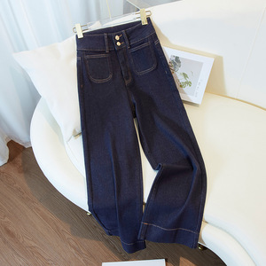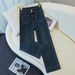 妙臻高腰牛仔九分烟管裤子女春秋季直筒裤女修身显瘦小个子2228